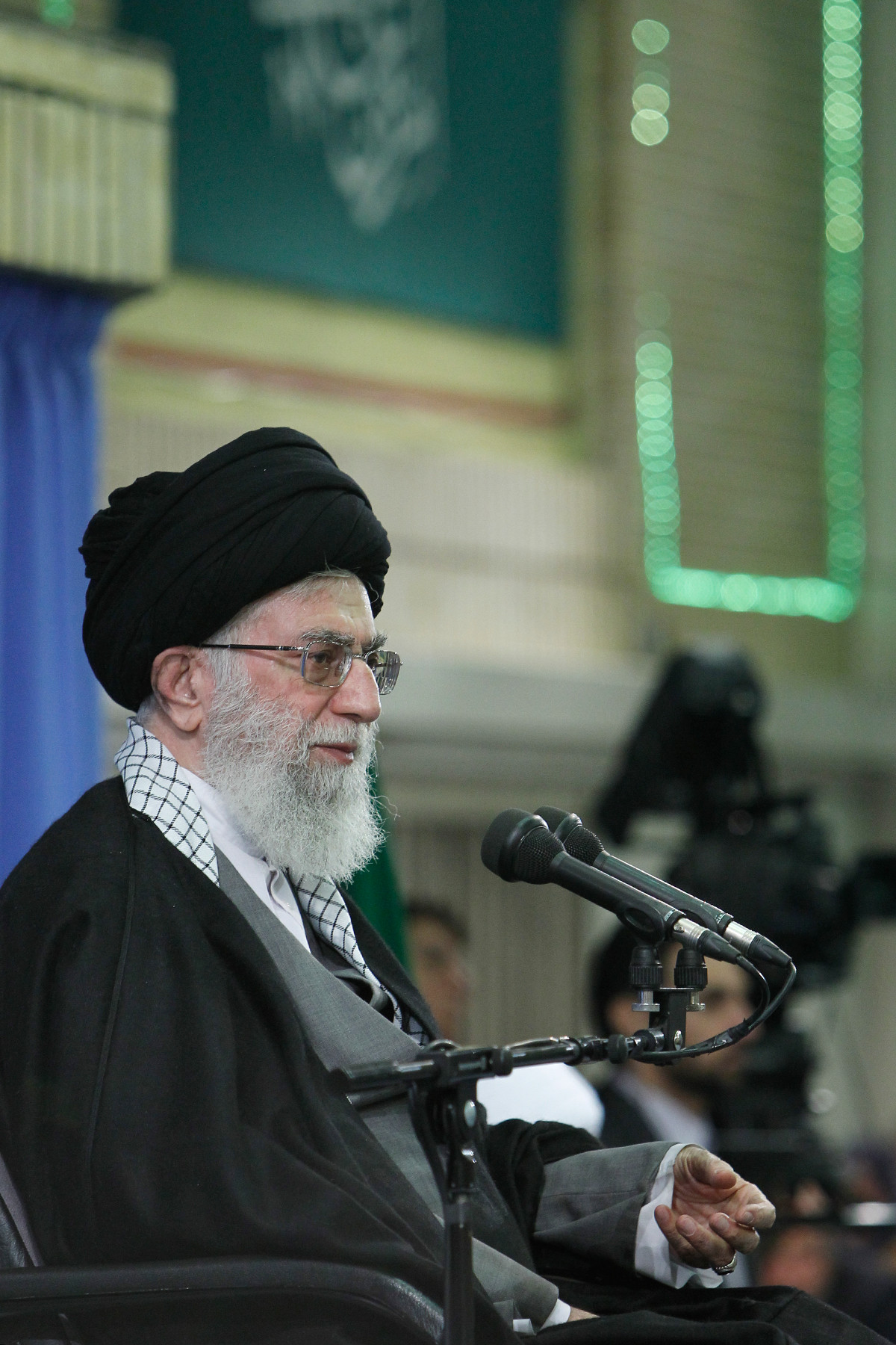 حضرت آیتالله خامنهای در این دیدار با اشاره به اینکه مسألهی اصلی استکبار با جمهوری اسلامی، مسألهی هستهای نیست، فرمودند: «ملّت باید بیدار باشد، تبلیغاتچىهاى دشمن تبلیغ میکنند که اگر ما در مقابلِ طرف مقابل تسلیم شدیم، همهى مشکلات اقتصادى و مانند اینها حل خواهد شد؛ این خطا است. همین دشمنیها، همین مخالفتها از اوّل انقلاب بود؛ اگر یک روزى هم جمهورى اسلامى عقبنشینى کرد و مسئلهى هستهاى همانطور که آنها میخواهند، حل شد ؛ خیال نکنید مسئله تمام خواهد شد؛ نه، بهانههاى دیگر را بهتدریج پیش میکشند.»